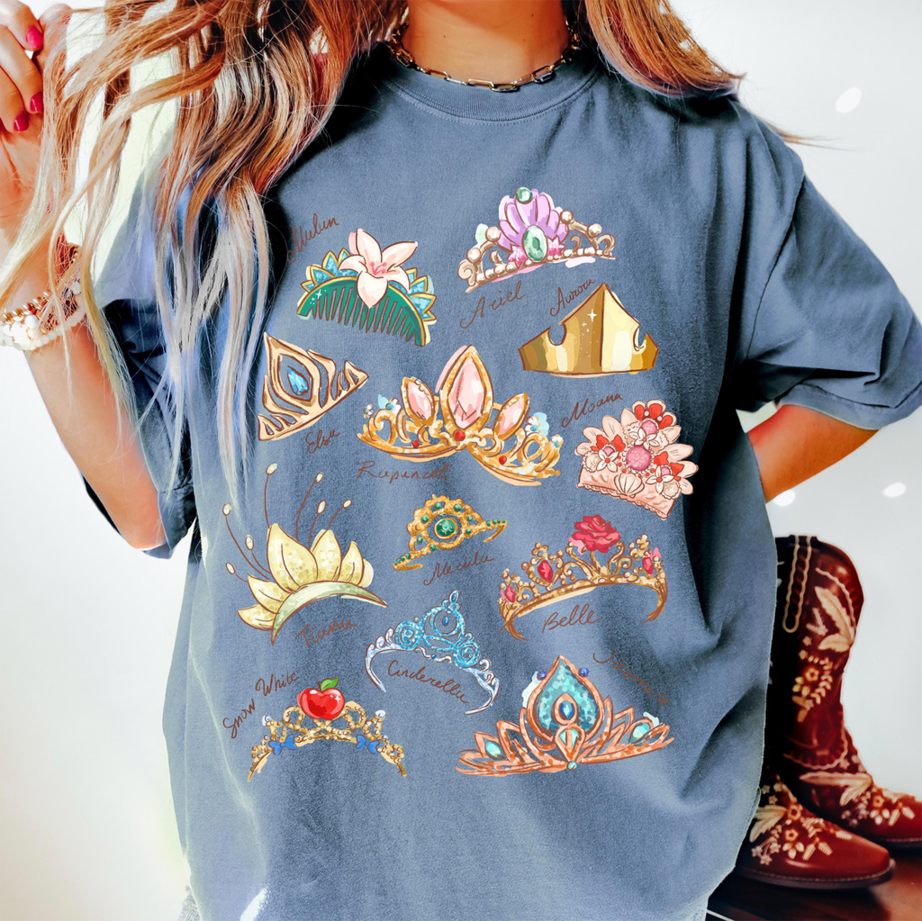 Comfort Color Disney Princess Crown Shirt Disneyworld Shirt Cinderella Belle Rapunzel Ariel Snow White Disney Girl Trip Shirt