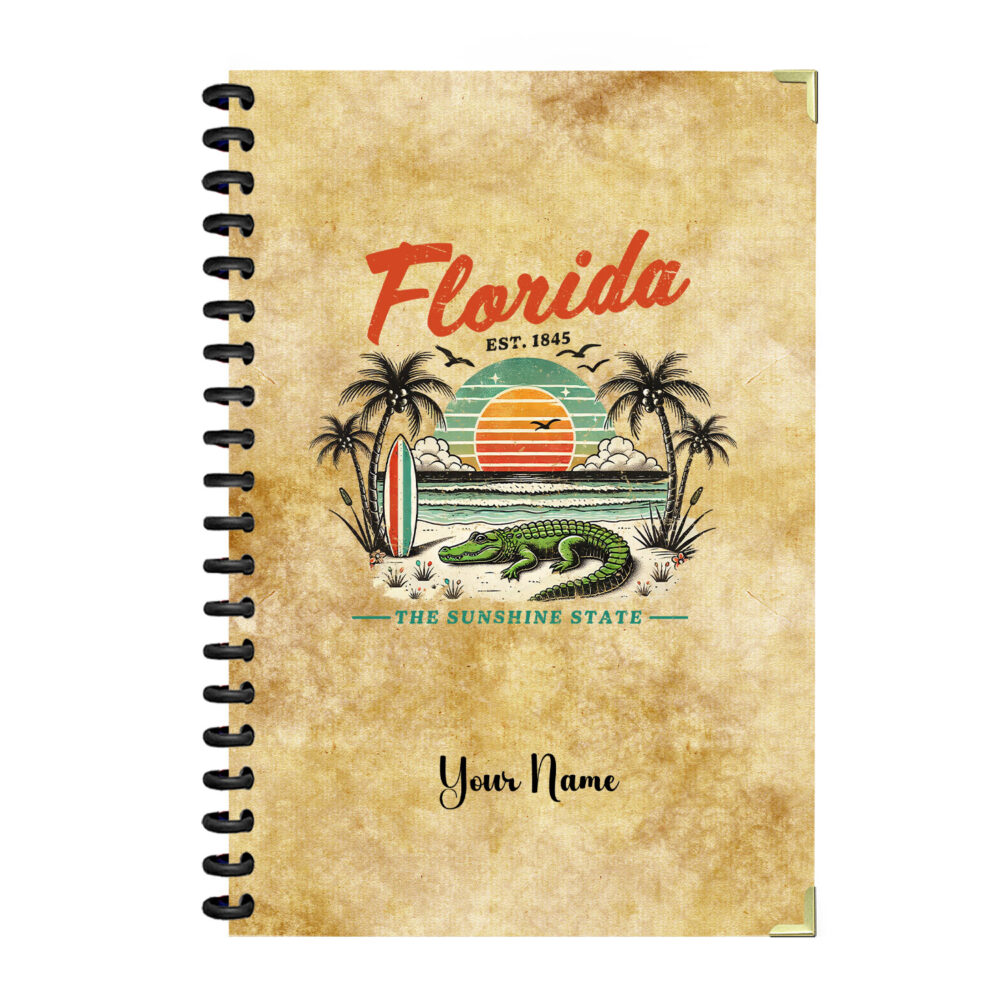 Florida Spiral Notebook Vintage Retro Alligator Beach…