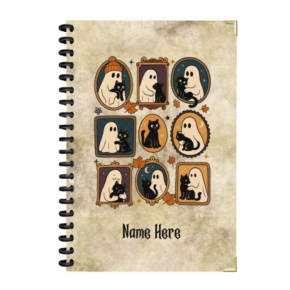 Cute Ghost and Black Cat Halloween Spiral…