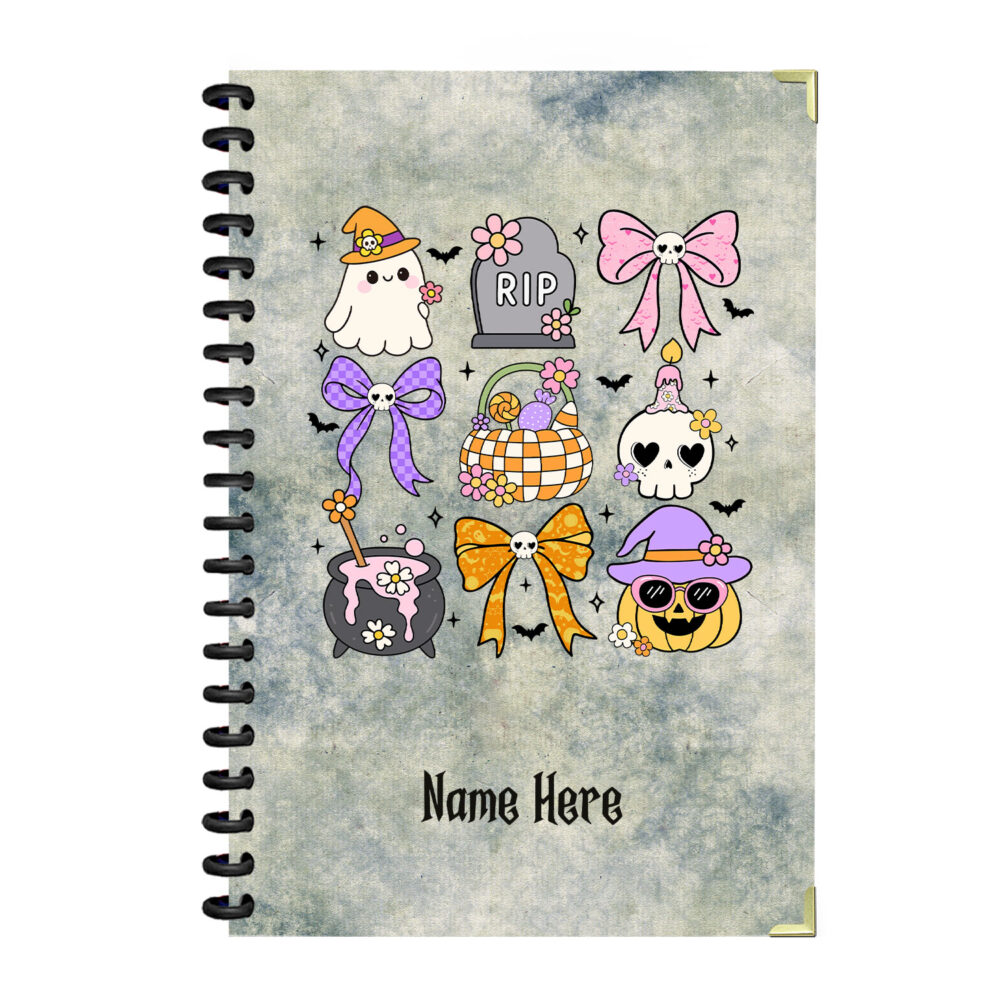 Girly Halloween Spiral Notebook Cute Ghost, Pumpkin…