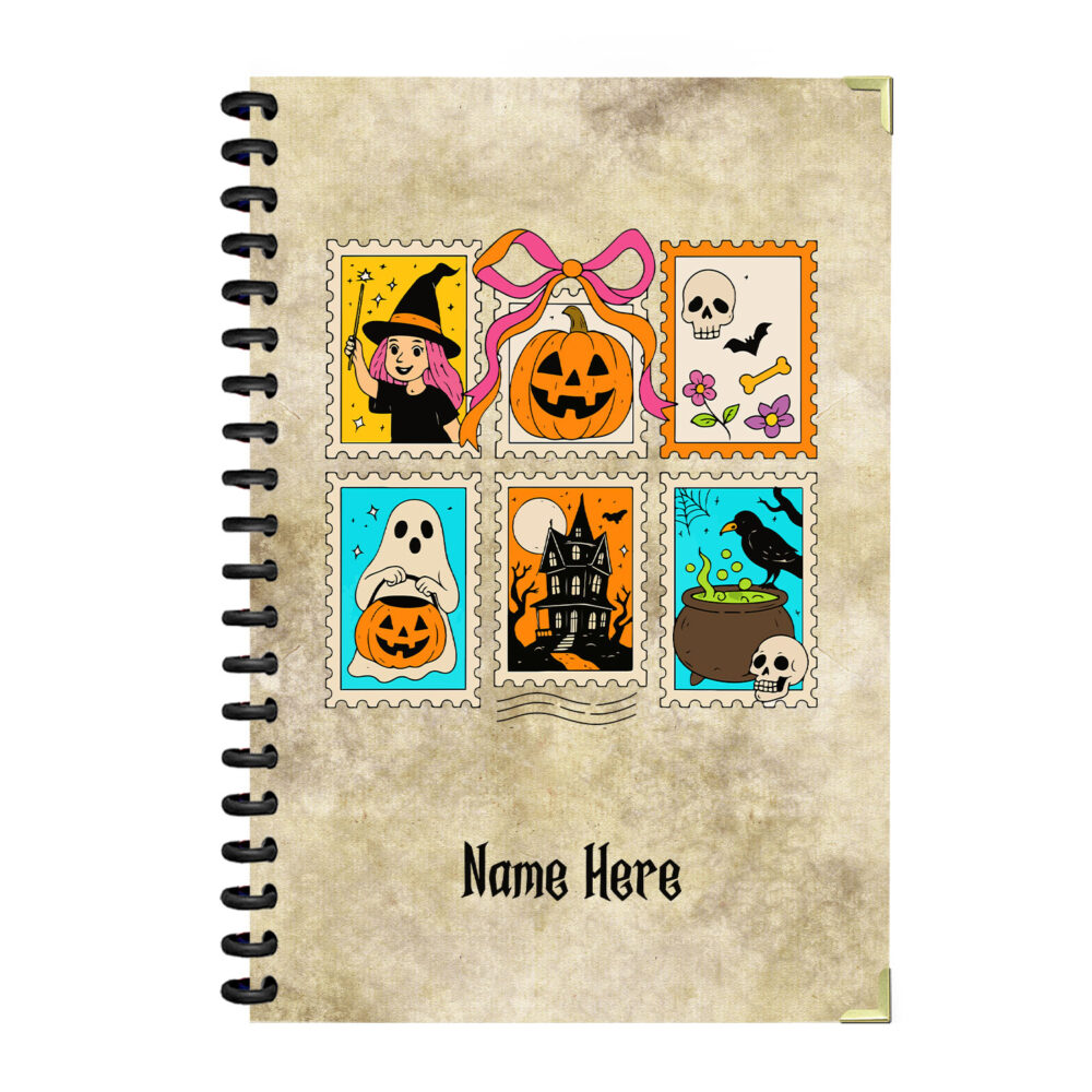 Halloween Postage Stamp Spiral Notebook – Witch,…